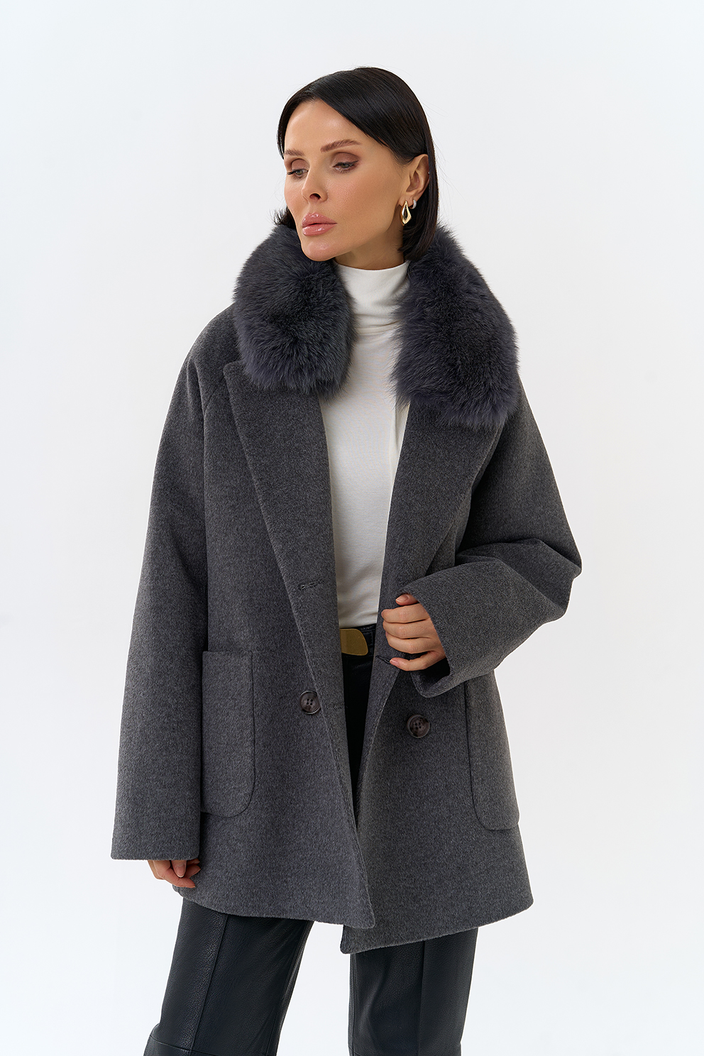 Крой воротника - английский воротник, отделка песец